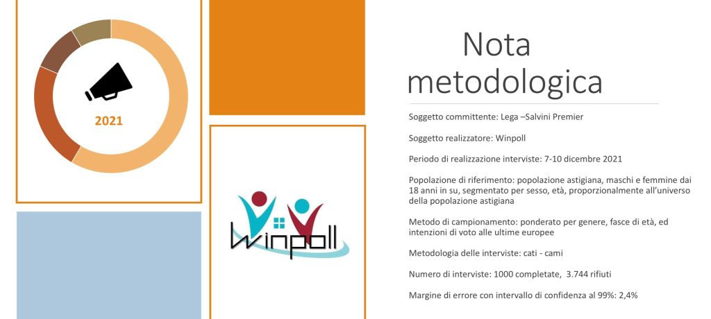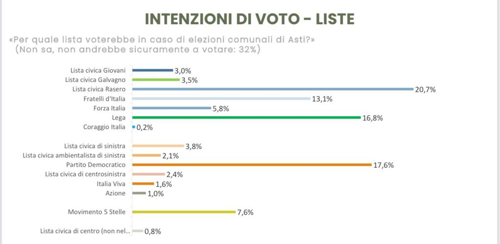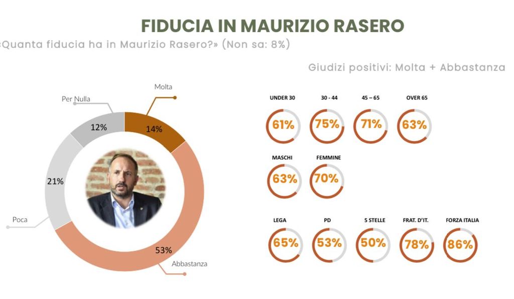 Stando a un sondaggio, realizzato dalla società Winpoll su committenza della Lega-Salvini Premier, sulla popolazione astigiana dai 18 anni in su (1.000 interviste completate, 3.744 i rifiuti, margine di errore stimato pari al 2,4%), gli astigiani giudicherebbero in modo sostanzialmente positivo il lavoro svolto nell’arco del mandato dal sindaco Maurizio Rasero (il 53% dà un giudizio “abbastanza positivo”, il 14% “molto”, poco o per nulla positivo per un restante 33%, mentre l’8% non si è espresso) con prevalenza tra gli elettori di centro-destra e nelle fasce d’età intermedie (ovvero tra i 30 e i 65 anni)