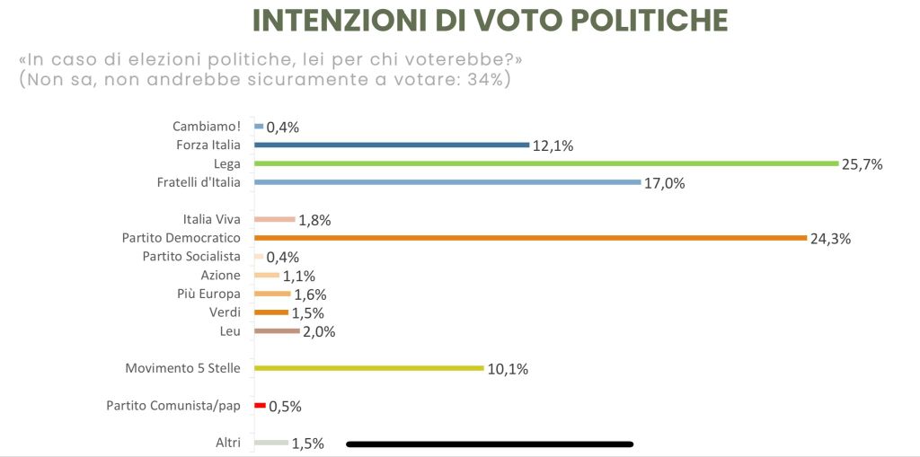 Sul fronte opposto, “la parte del leone” la farebbe il Partito Democratico, di fatto egemone in una coalizione di centro-sinistra nella quale i sondaggisti hanno inserito anche Italia Viva e Azione, entrambe con percentuali molto contenute.