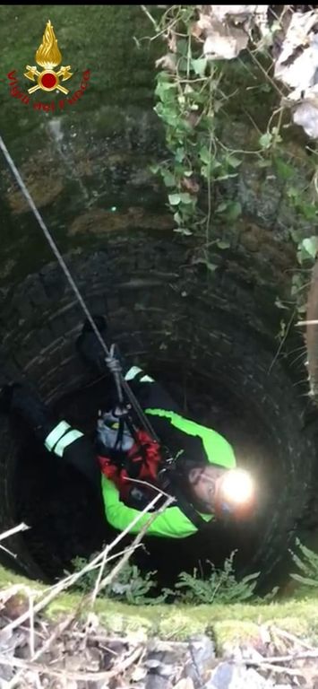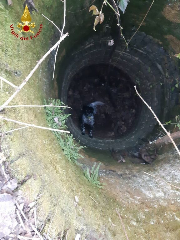 Vigili del fuoco salvano setter finito in fondo a un pozzo