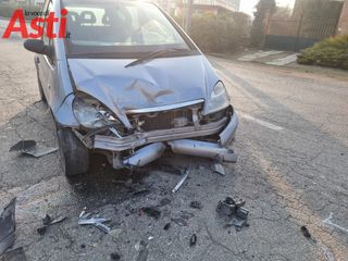Tamponamento oggi all'incrocio a Castell'Alfero Sp.457, al bivio per Frinco, tra una Mercedes Classe A e una Fiat Punto.