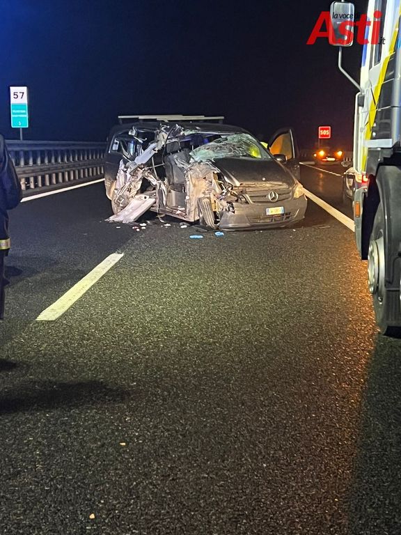 Un furgone ha tamponato un mezzo spargisale, al km 57, in direzione Asti.
