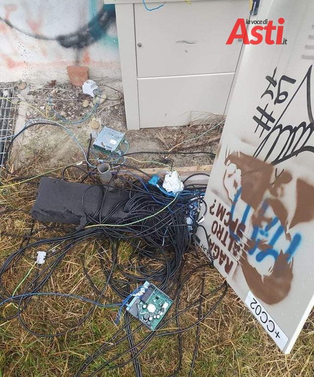 Lungo Tanaro: vandalizzata la cabina elettrica vicino al depuratore. Un'altra storia di ordinaria inciviltà (FOTO)