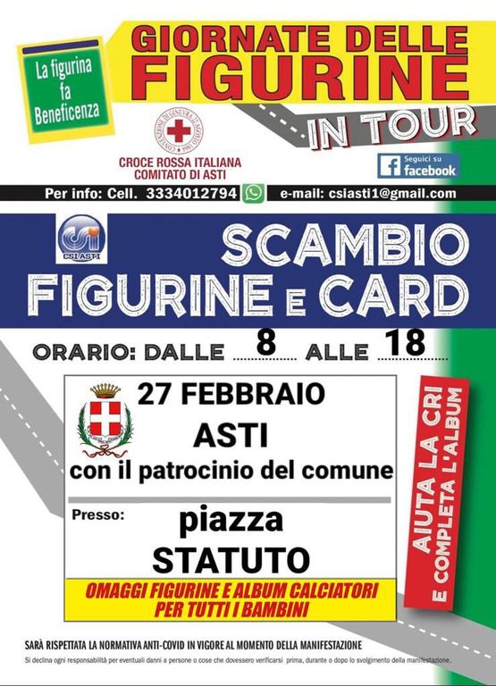 La manifestazione, che gode del patrocinio del Comune di Asti, consisterà in una giornata intera di scambio di figurine e card.