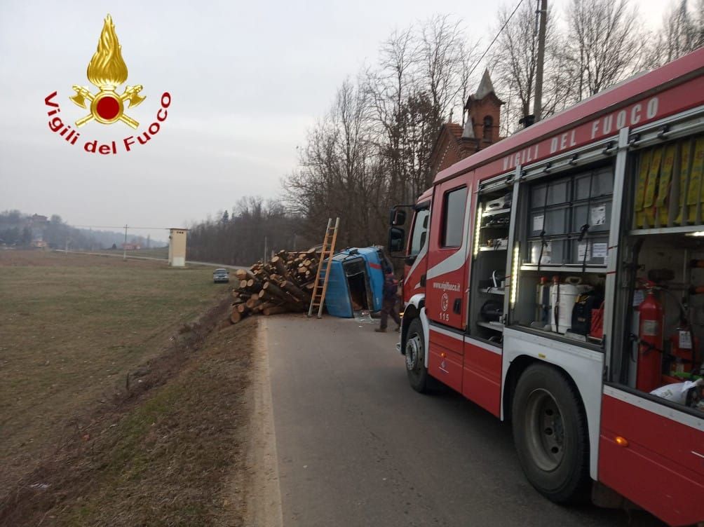 Questa mattina alle sette, a Valleandona, un camion carico di legna si è ribaltato su un fianco per cause da accertare.