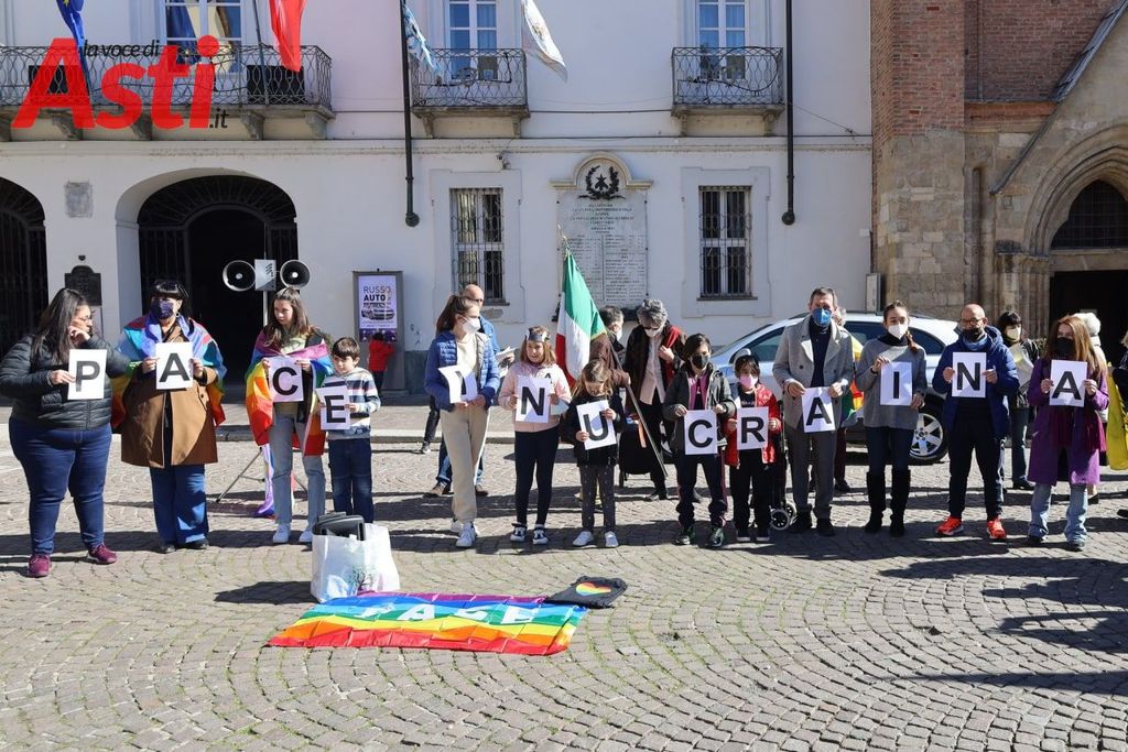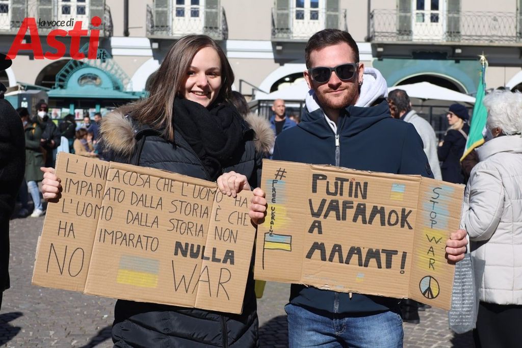 Tante le organizzazioni, associazioni, politici e cittadini astigiani e ucraini per ribadire un forte no alla guerra.