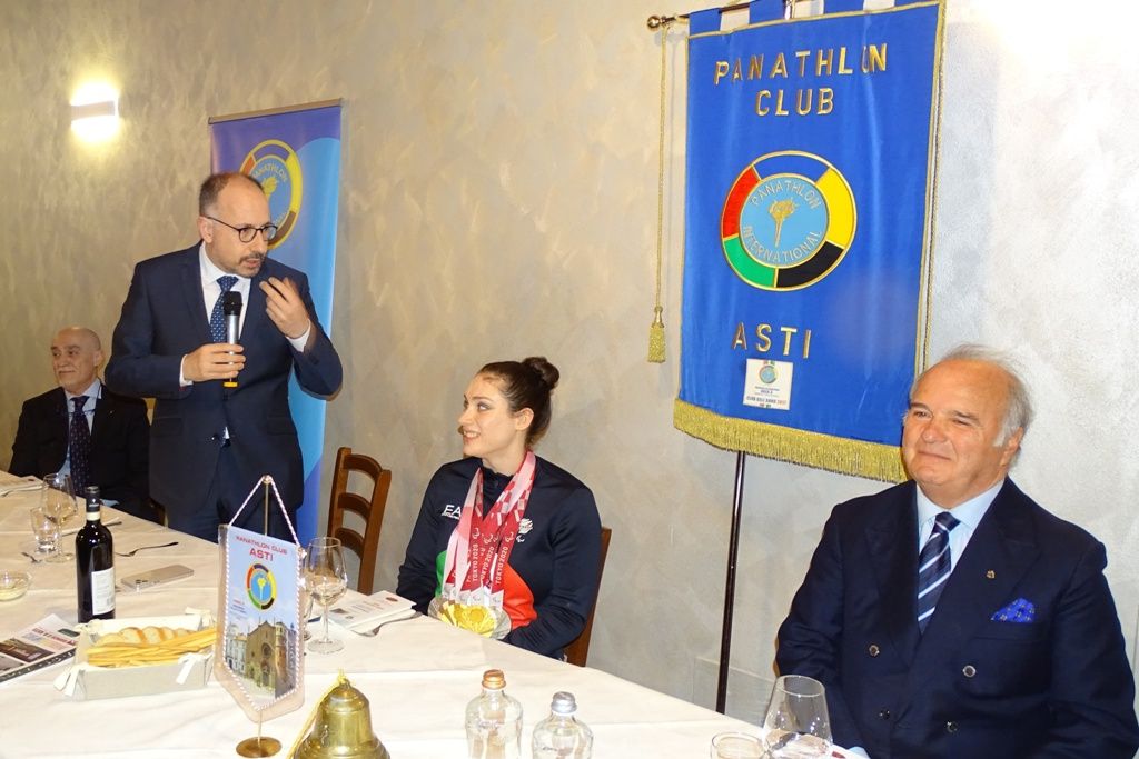 L’atleta, nell’occasione accompagnata dalla mamma Tiziana e dal papà Marco, vestendo la divisa ufficiale della nazionale italiana, ha portato con sé ai panathleti astigiani le cinque medaglie vinte (2 d’oro, altrettanti argenti ed un bronzo) lo scorso agosto in Giappone.