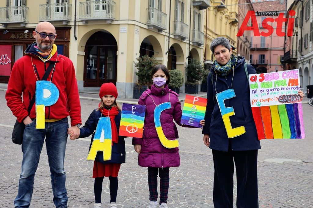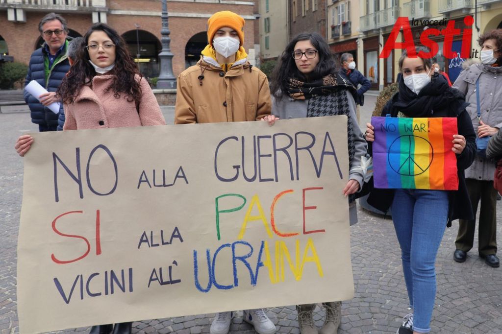 L'ultima oggi pomeriggio in piazza San Secondo, targata Rete Welcoming Asti. Un presidio contro la guerra. "Un ponte di corpi", per cui sono tornate in piazza tantissime associazioni del territorio.