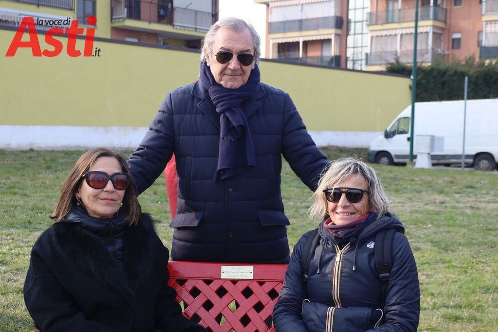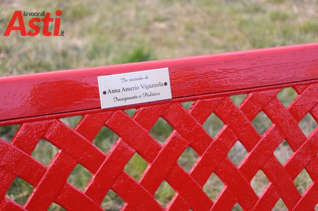 La Giornata della donna ha portato ad Asti una nuova panchina rossa, intitolata all'insegnante, politica e figura di rilievo nel panorama del volontariato astigiano, Anna Amerio Vigazzola. La panchina è stata posizionata al parco Perroncito - intitolato a Giuseppe Lombardi, papà della consigliera Elisabetta - ed è stata promossa dalla commissione Pari Opportunità della Provincia di Asti.