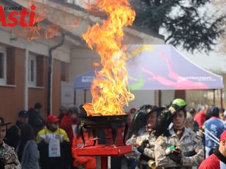 Dopo l'esecuzione dell'Inno italiano del trombettista Mauro Pavese, a seguire accensione della fiaccola e consegna al primo tedoforo Michele Narciso.