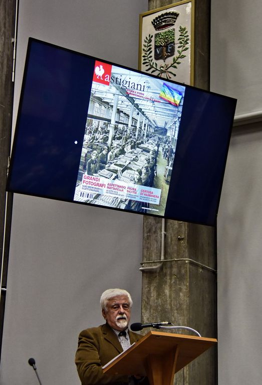 Ventiquattro rintocchi di campana, tanti quanti i giorni di guerra che hanno finora devastato l’Ucraina. È cominciata così, sabato pomeriggio al salone della Provincia, la presentazione del nuovo numero della rivista Astigiani. In copertina la bandiera della pace e una foto storica delle operaie della Way Assauto, negli Anni Trenta, controllate dai militari perché producevano spolette per bombe.