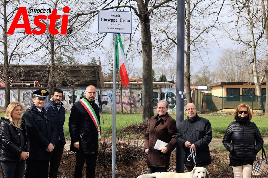 Questa mattina, alle 12, è stata scoperta la targa di intitolazione allo storico astigiano Giuseppe Crosa della rotonda che unisce via Monsignor Marello e via dell’Arazzeria, a pochi metri dall’abitazione in cui l’intellettuale astigiano visse.