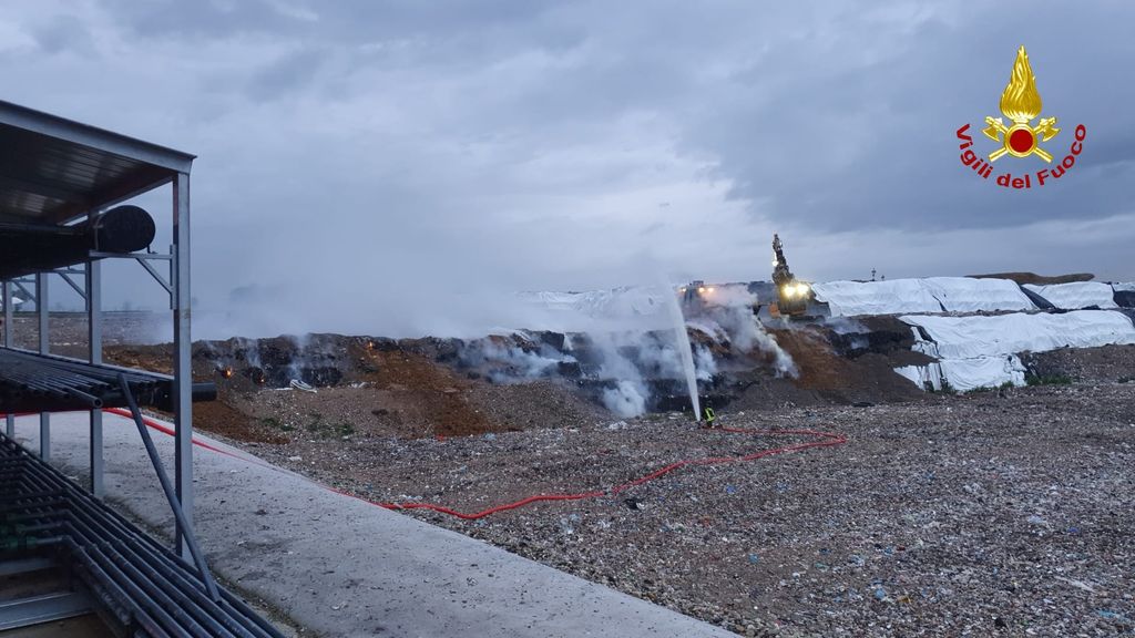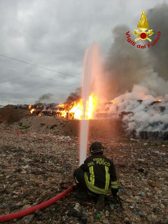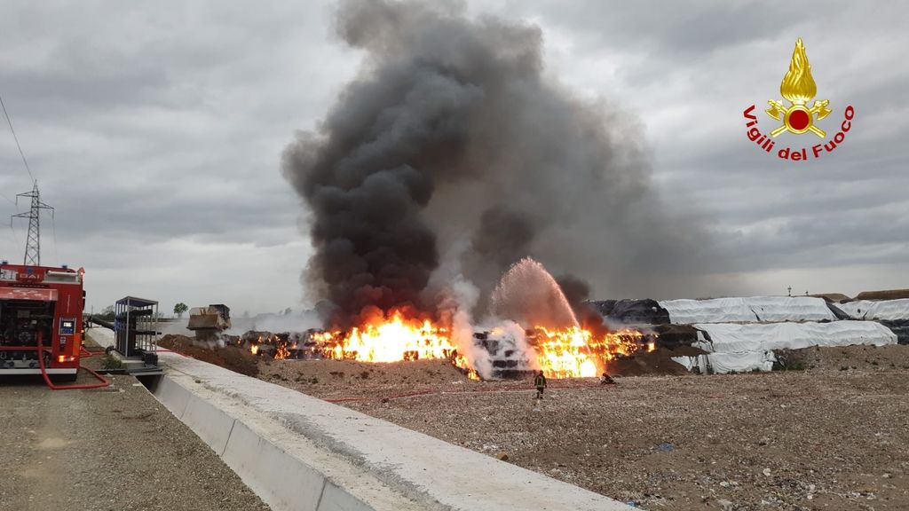 Imponenti le fiamme a cumuli di rifiuti che hanno richiesto l'intervento delle squadre dei vigili del fuoco di Asti e da Nizza con un'autobotte.