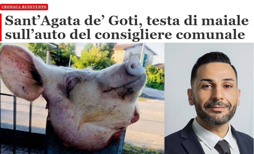 In Campania spunta un'intimidatoria testa di maiale per un consigliere comunale, ma un giornale usa foto di un avvocato di Asti