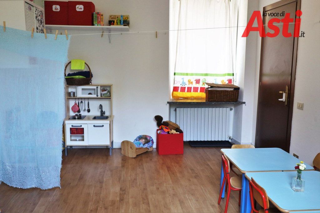 La Scuolina è nata in uno spazio al piano terra, affacciato sul cortile, al centro di accoglienza dell’ex Seminario di Asti in via Giobert 15.