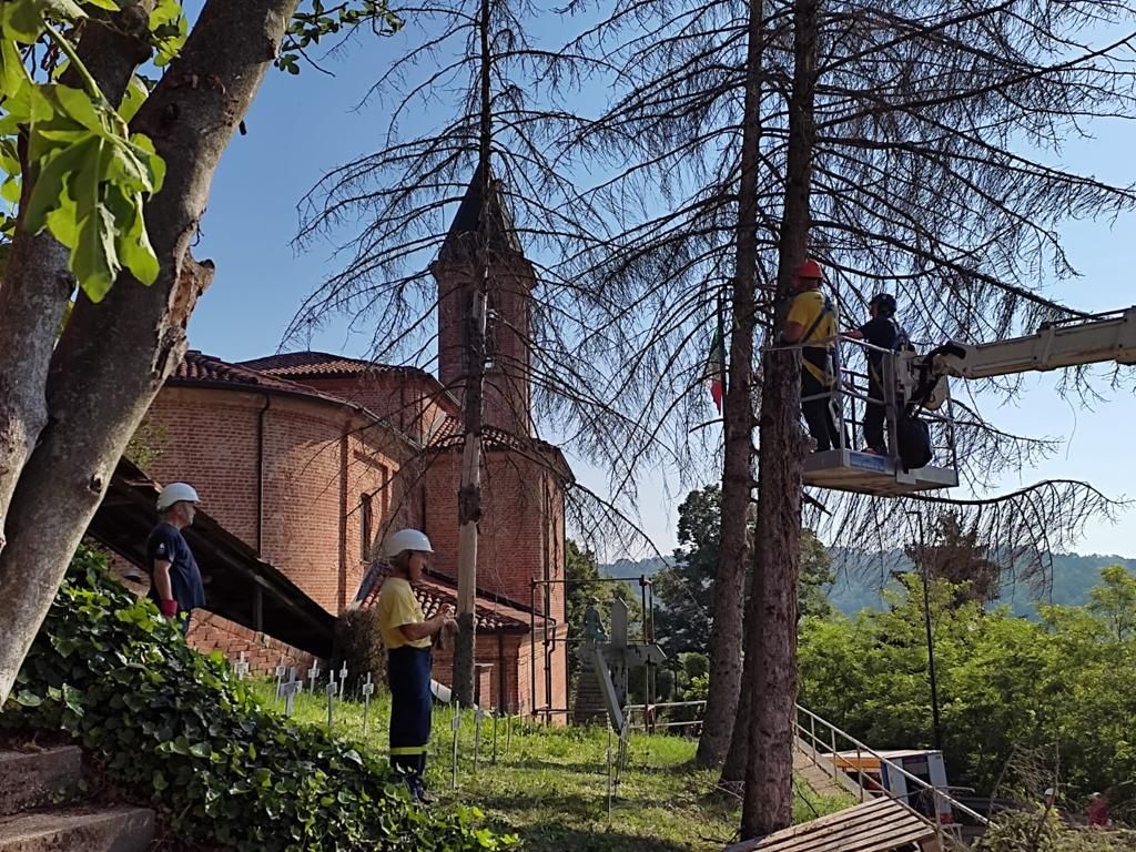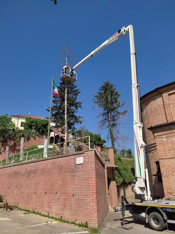 Questa mattina intervento di abbattimento piante ad alto fusto presso località Serravalle D'Asti, a cura dei volontari di Protezione Civile.