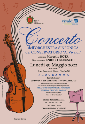 Lunedì 30 maggio alle 21 al Foro Boario, infatti, si terrà un concerto con l'Orchestra Sinfonica del Conservatorio di Alessandria, diretto dal maestro Marcello Rota. Voce narrante di Enrico Beruschi, con letture.