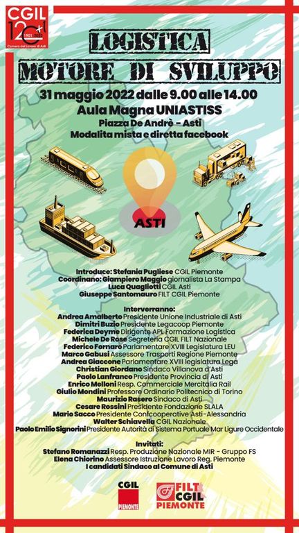 Martedì 31 maggio ad Asti si terrà il convegno “Logistica motore di sviluppo”, dalle 9 alle 13.30 presso l'Aula Magna di UniAstiss, in piazza De Andrè ad Asti.