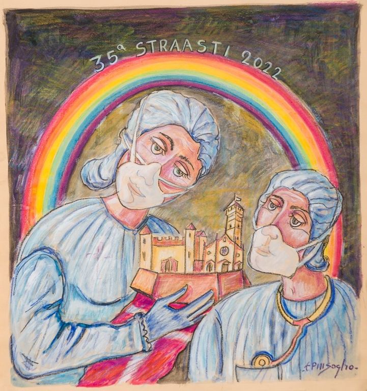 Un incarico affidato all'artista astigiano Filippo Pinsoglio che, dopo essere stato negli ultimi anni il "Maestro" di Giro d'Italia 2020, Palio di Asti e Palio dell'Amicizia 2021 e del "sessantennale" dell’Aprile 2022 del Panathlon Club Asti, ha realizzato un elaborato (con un chiaro spunto dall'immagine a tutti nota a livello nazionale). Un semplice grazie per chi, gli operatori della sanità in particolare, ha combattuto al fianco di chi soffriva nel terribile momento della pandemia.