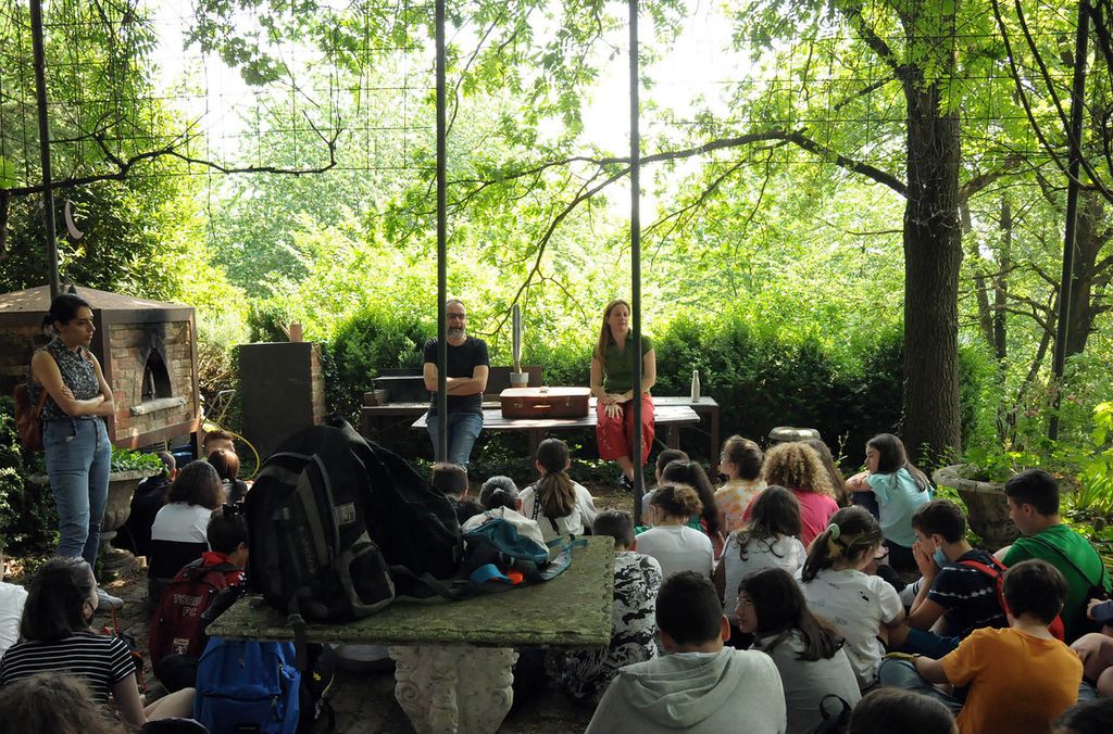 Telefoni negli zaini, i ragazzi hanno ascoltato anche da Massimo Barbero e Lorenza Zambon la storia della casa, dei suoi alberi secolari, dell’usignolo che canta ogni sera, hanno camminato per un sentiero in mezzo ai vigneti, pranzato all’ombra di un noccioleto, ascoltato il fruscio del vento sulle spighe ancora verdi nei campi di grano.