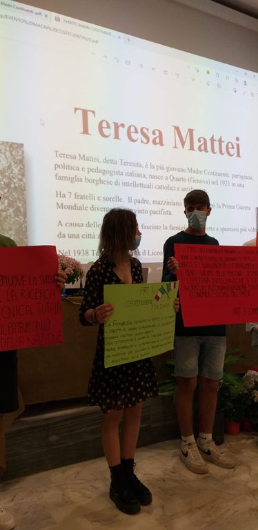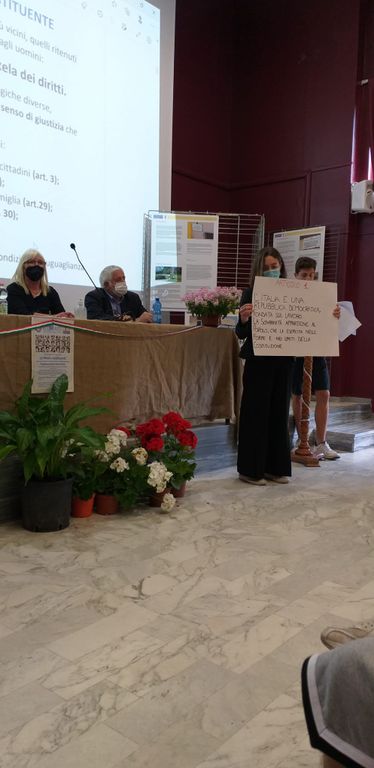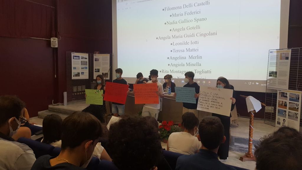 “Si è trattato, non solo di una cerimonia inaugurale - spiega la referente di Toponomastica femminile dottoressa Giovanna Cristina Gado, intervenuta a presentare la mostra - ma di un evento didattico di cittadinanza consapevole, di straordinario coinvolgimento, di entusiasmo, di emozioni e di partecipazione attiva, che ha visto protagonisti e protagoniste studenti, studentesse e docenti con il susseguirsi delle loro testimonianze , riflessioni, letture e puntuali interventi sulla vita, sul talento, sul coraggio e sul pensiero illuminato delle 21 donne elette il 2 giugno 1946 all’ Assemblea Costituente, formata da 556 componenti e sul determinante contributo che, nonostante in poche, seppero apportare alla Costituzione della Repubblica Italiana” .