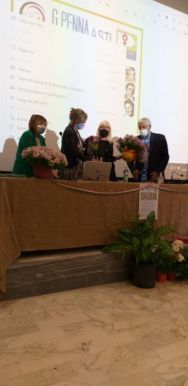 “Ho espresso con grande emozione e soddisfazione, anche a nome della presidente di Toponomastica femminile, professoressa Maria Pia Ercolini, il più sentito apprezzamento per la concreta virtuosa azione didattico/formativa dell’Istituto scolastico G. Penna di Asti che – afferma ancora la referente - cogliendone l’importanza storica e culturale, ha deciso di ospitare questa mostra, nell’ambito del progetto di educazione civica, che ci aiuta ad essere cittadini e cittadine consapevoli e di celebrare le 21 Costituenti della Repubblica, dandone visibile tributo di memoria, con l’apposizione della targa, loro dedicata, all’acero campestre antistante l’ Istituto, e con vivo piacere ho consegnato il Calendaria 2022 di Toponomastica femminile al dirigente scolastico professor Renato Parisio ed alla docente-referente di educazione civica professoressa Maria Grazia Rizzo, a suggello di un sincero ringraziamento per l’adesione all’ iniziativa di Toponomastica femminile, e per il richiamo, attraverso la mostra Le Madri Costituenti, alla Costituzione della Repubblica Italiana con i suoi principi di libertà, di uguaglianza e di pace, fondamentali e irrinunciabili per la democrazia del nostro Paese.”