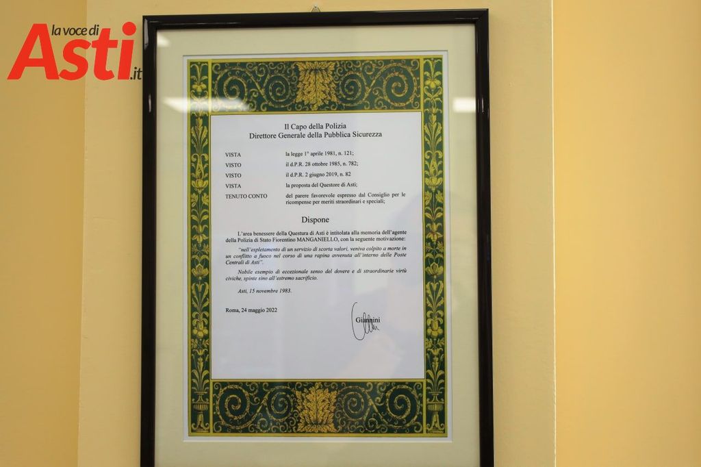 Intitolata alla memoria di Fiorentino Manganiello la nuova area benessere della questura di Asti (FOTO)