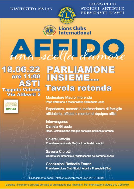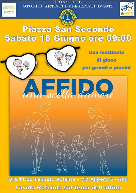 Il Lions Club Storici, Artisti e Presepisti d'Asti domani porrà la sua attenzione sul tema di studio nazionale dei Lions italiani: l'affido familiare.