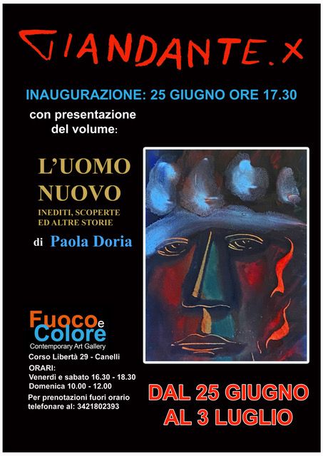 Durante il vernissage verrà presentato il volume “Giandante X - L’Uomo Nuovo” con la presenza dell’autrice che racconterà la figura dell’artista attraverso i dipinti, le poesie e aneddoti di persone che lo hanno conosciuto. Il volume è frutto di quasi quindici anni di ricerca e si pone come obiettivo, attraverso un linguaggio volutamente non tecnico, di raccontare il mondo di Giandante sia a chi già lo conosce, sia a chi invece vuole avvicinarsi a questa figura, partendo da quello che ci ha lasciato: le sue opere, le poesie, gli scritti inediti. Molti sono i misteri legati all’artista ma almeno uno è stato in parte svelato dall’autrice: quello della sua morte che per anni è stato avvolto da interrogativi e informazioni vaghe ed erronee. Il volume di Paola Doria è una lettura divulgativa che vuole far innamorare i lettori dell’arte e della passionalità di Giandante, ricco di spunti, storie inedite, testimonianze e possibili chiavi di lettura che mai vogliono cadere, volutamente, in tecnicismi privi di utilità.
