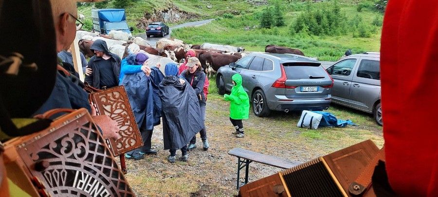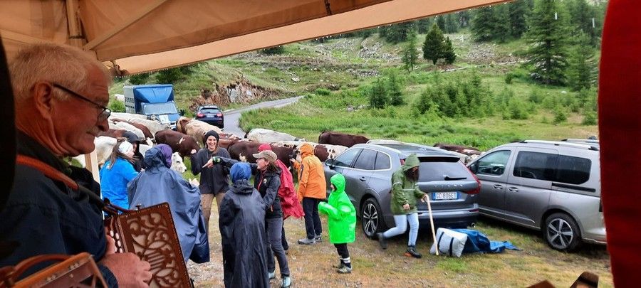 La pioggia e il vento hanno accompagnato la giornata di transumanza in alta valle Stura dell'Azienda agricola Fiore dei Monti di Moiola. Un'azienda famigliare nata da Andrea Colombero e dalla moglie Barbara Viale che nel 2016 decisero di trasferirsi nella località Maigre alle porte di Moiola in bassa Valle Stura, per lavorare in modo sostenibile, rispettando l'ambiente con una produzione altamente territoriale.
