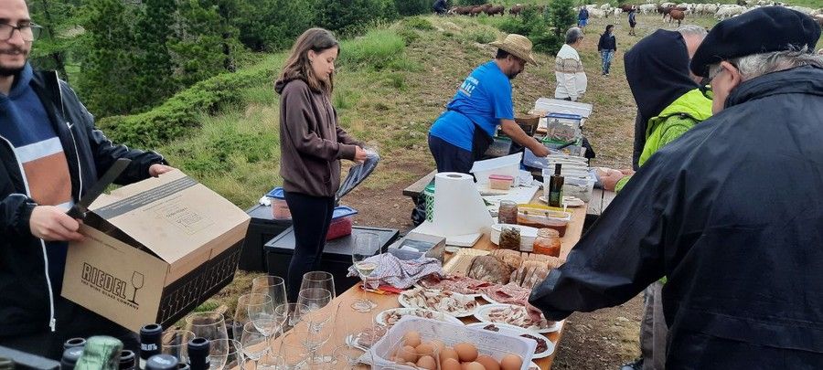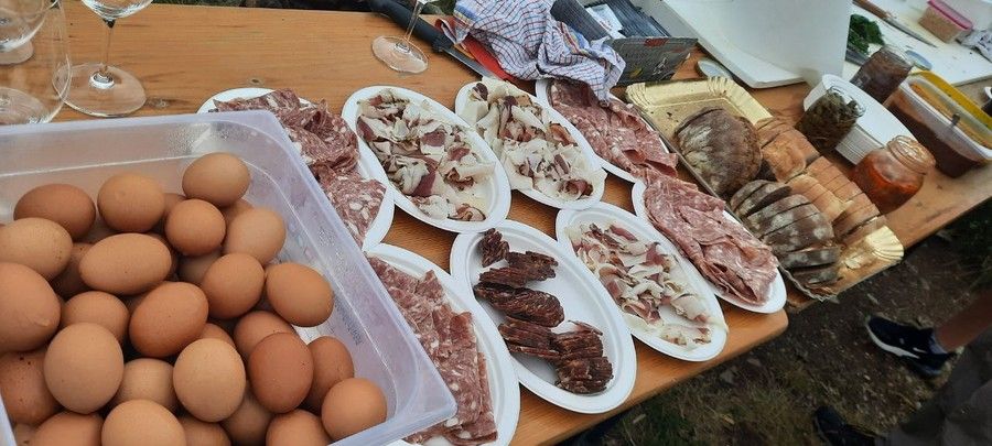 Dopo il colle della Lombarda è stato allestito un lauto banchetto con prodotti tipici preparato dalla piola “A L'Ubac” del Centro Fondo di Festiona, con i vini della Cantina Dogliotti 1870 di Castagnole delle Lanze.
