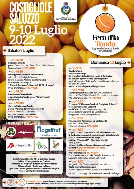 Poteva la Tonda di Costigliole Saluzzo, una delle albicocche più saporite che si possano trovare sul mercato, un vero e proprio unicum, un prodotto di altissima qualità che a Costigliole, fin dal 1800 ha trovato il suo habitat naturale non avere una sagra a lei dedicata? Ovviamente no!