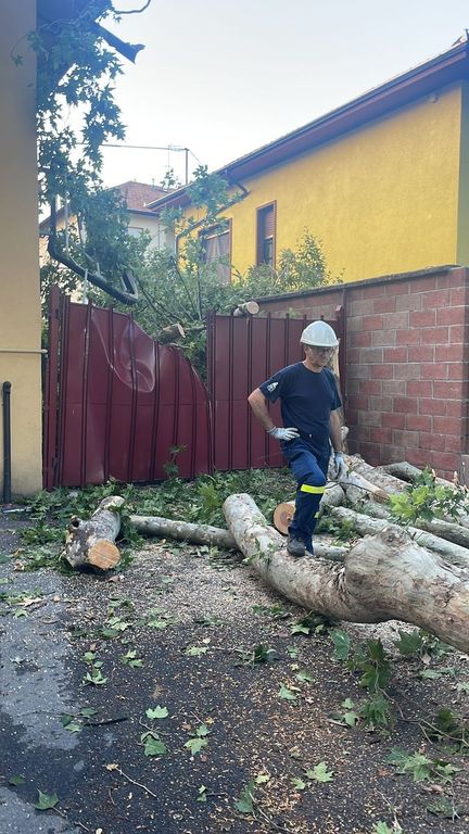 Una squadra è intervenuta per la messa in sicurezza di piante cadute, soprattutto in viale Pilone e parco Lungo Tanaro