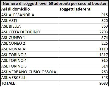 Alle 18 di oggi sono quasi 10 mila le preadesioni per la 4^ dose over 60 sul portale www.IlPiemontetivaccina.it .