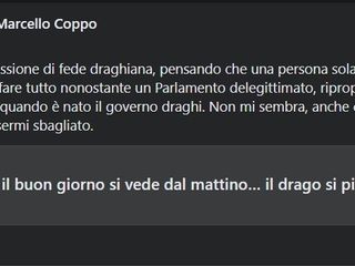 “A chi fa professione di fede draghiana, pensando che una persona sola, e neppure eletta, possa fare tutto nonostante un Parlamento delegittimato, ripropongo il mio intervento di quando è nato il governo draghi. Non mi sembra, anche con il senno del poi, di essermi sbagliato”, scrive su Facebook riproponendo un suo commento rilasciato quando si insediò il primo governo dell’ex governatore della BCE.