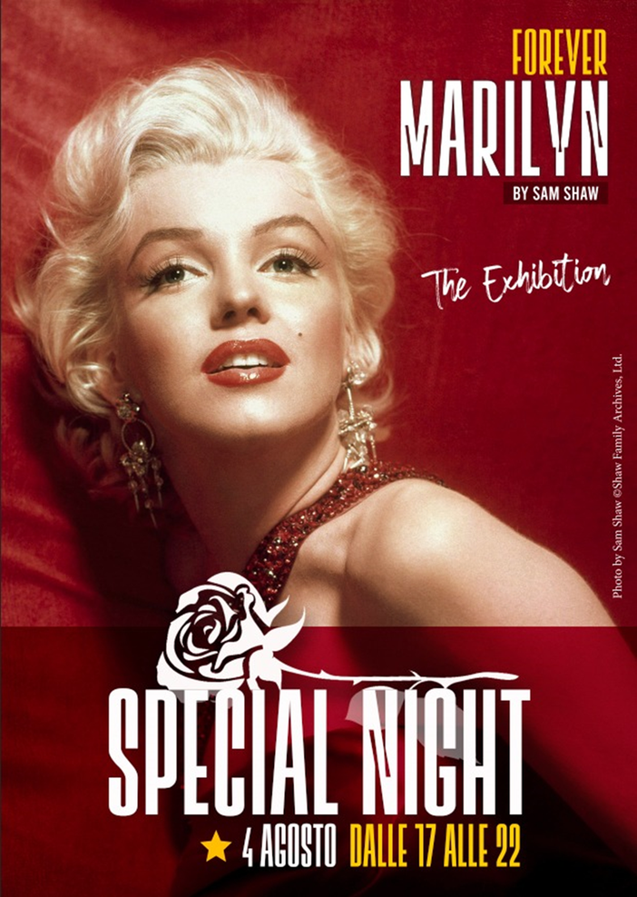 La mostra-evento, con le fotografie iconiche di Sam Shaw e con i memorabilia originali di Marilyn, rimarrà aperta eccezionalmente fino alle ore 23.