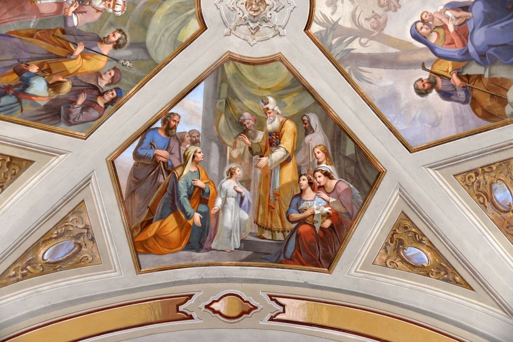 Il Cardinale Lajolo, nei diversi capitoli dell’opera, ha descritto dal punto di vista artistico, teologico e biblico gli affreschi della navata centrale che illustrano: la Santissima Trinità, la resurrezione di Lazzaro, l’Ultima Cena, gli Evangelisti, alcune scene della vita della Madonna (la presentazione di Maria al tempio, lo sposalizio con San Giuseppe, la nascita di Gesù, la fuga in Egitto), le tre virtù teologali, alcuni profeti (Mosè, Davide, Isaia e Geremia) e le figure di Santi (San Pietro, San Paolo, Santa Teresa d’Avila e San Francesco Saverio).