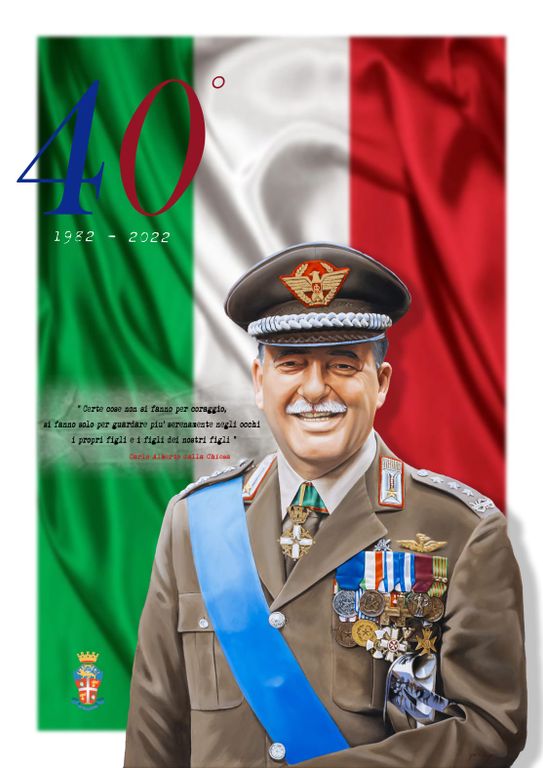 A quaranta anni dall’attentato, il Comando Generale dell’Arma celebra il Generale Dalla Chiesa in una locandina che lo ritrae sullo sfondo della bandiera italiana e riporta un suo significativo pensiero “Certe cose non si fanno per coraggio, si fanno solo per guardare più serenamente negli occhi i propri figli e i figli dei nostri figli”. Con questa locandina, nell’alveo delle diverse iniziative promosse a memoria della ricorrenza, il Comando Generale ha voluto ricordare una delle pagine più tristi della recente storia italiana.