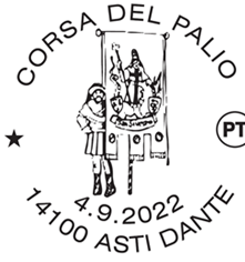 Per l’occasione dalle 9 alle 15 sarà allestito uno spazio filatelico temporaneo, dove sarà possibile ottenere l’annullo dedicato all’iniziativa sulle speciali cartoline stampate per l’occasione dall’Associazione Filatelica Astigiana. L’annullo, nel formato tondo, riproduce un figurante, con la scritta “CORSA DEL PALIO – 4.9.2022”.