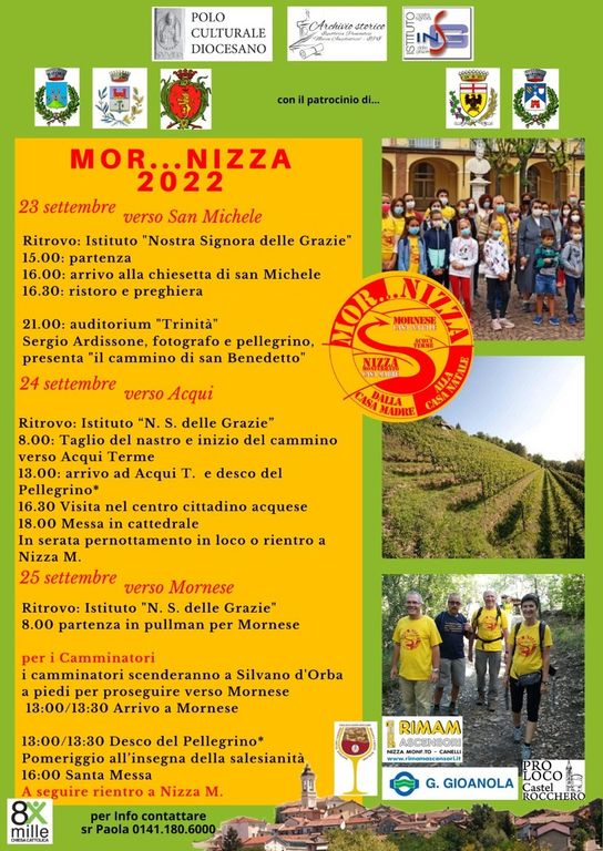 Durante l’incontro con i giornalisti si è però parlato anche dei numerosi appuntamenti in programma nei giorni a venire, ad iniziare dalla quinta edizione del pellegrinaggio “Mor… Nizza” in programma dal 23 al 25 settembre prossimi. Un appuntamento molto apprezzato dai fedeli, che venerdì vedrà i camminatori dirigersi verso San Michele, il sabato verso Acqui Terme e domenica 25 in direzione Mornese. In tutte e tre le giornate il ritrovo è fissato presso l’Istituto “Nostra Signora delle Grazie”. L’iniziativa è gratuita, ma sarà richiesto un contributo di 10 euro per i singoli pasti e di 10 euro per il pullman. La prenotazione è richiesta per motivi organizzativi entro mercoledì 21 settembre. Per maggiori dettagli in merito al ricchissimo programma vi rimandiamo alla locandina, pubblicata in calce a questo articolo.