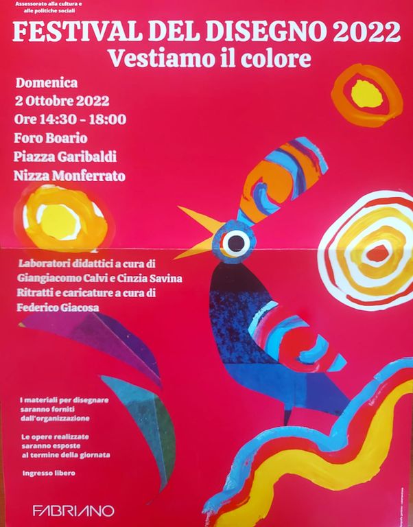 Doveroso, poi, segnalare la partecipazione nicese alla settima edizione del “Festival del Disegno Fabriano”, iniziativa nazionale che, per quanto riguarda Nizza Monferrato, si svilupperà presso il Foro Boario nell’arco del pomeriggio di domenica 2 ottobre. “E’ la settima edizione, ma per noi è come fosse la quinta, poiché negli ultimi due anni si è svolta da remoto e non vi abbiamo partecipato”, ha precisato l’assessore alla Cultura Ausilia Quaglia. Aggiungendo che “Per noi è un onore appartenere alla cerchia di città partecipanti al Festival. Sarà una giornata, dalle 14.30 alle 18, aperta a tutti: dai bambini agli anziani”.