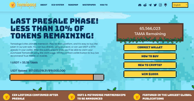 Il progetto sta lavorando per diventare la migliore prevendita crypto. Ha già raccolto oltre 17 milioni di dollari, cosa che evidenzia quanto gli investitori stiano apprezzando TAMA. La prevendita continuerà fino a quando verranno raccolti capitali per 19 milioni di dollari, mentre man mano il prezzo fissato per il token aumenta.