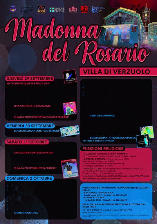 Prima domenica di ottobre e come tradizione nel borgo antico di Verzuolo ritorna la festa Madonna del Rosario.