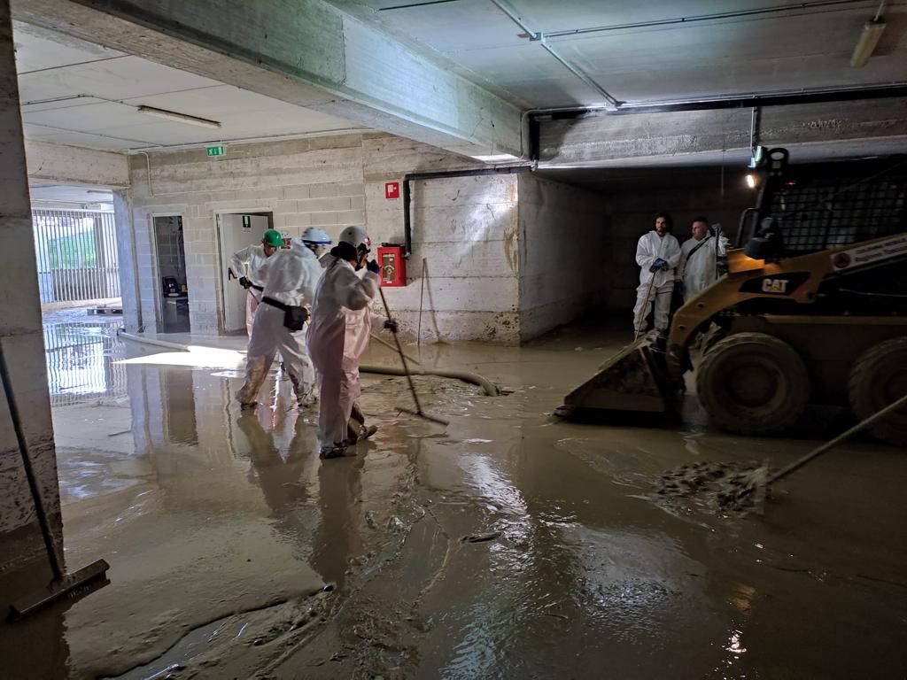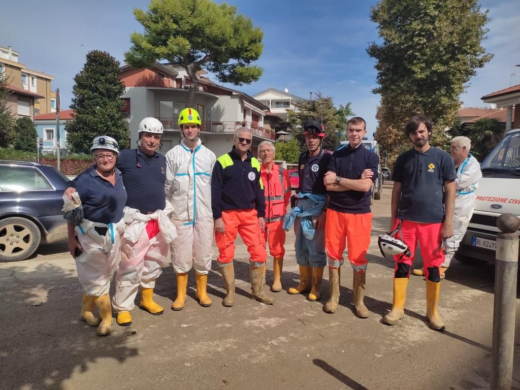 Gli interventi dei volontari, soprattutto a Senigallia, per contribuire a lavaggio strade e pulizia di locali