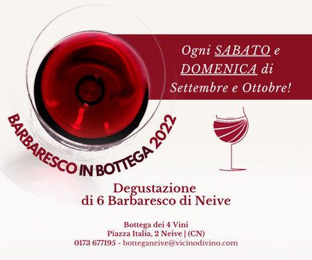 Non solo sabato. Da questo mese la "Bottega dei 4 Vini", vi aspetta anche la domenica per le imperdibili degustazioni di barbaresco dei produttori di Neive.