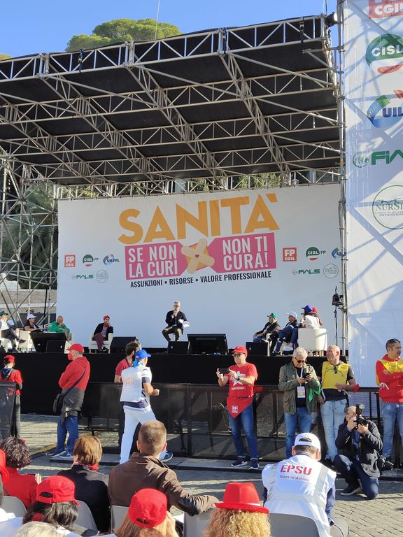 Oggi la sanità italiana è scesa in piazza a Roma, dove lavoratrici e lavoratori stanno manifestando in piazza del popolo.