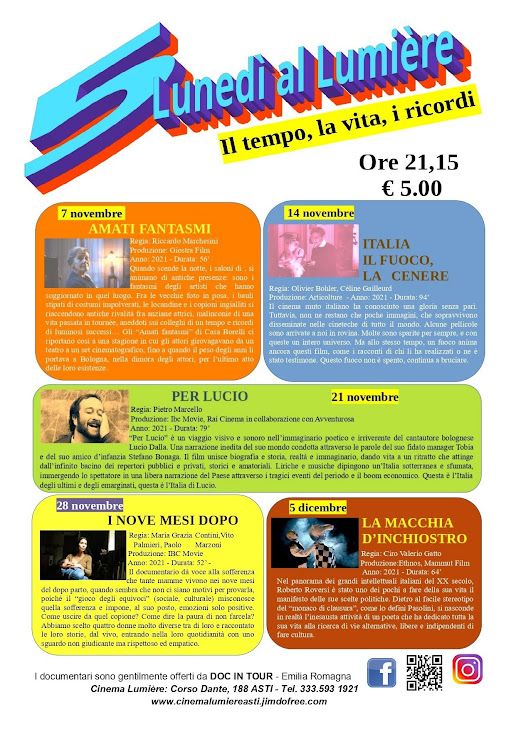 Informazioni allo 0141 413630 e 333.5931.921- www.cinemalumiereasti.jimdofree.com - pagina Fb: Lumière e Instagram: lumiereasti.