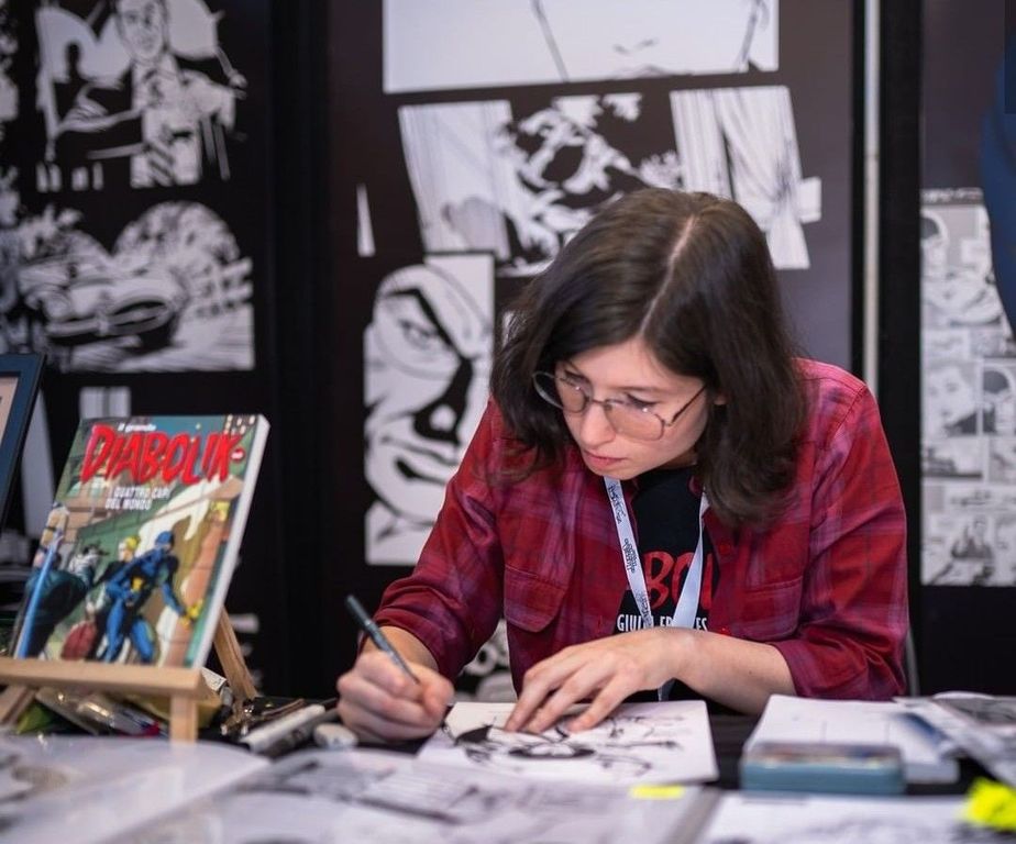 Giulia: convivo con il mio compagno, Marco. Prima lavorava in fabbrica, ma ha sempre avuto un'anima artistica. Con il passare del tempo, ha deciso di licenziarsi e ora, in casa, ci sono due scrivanie. Lavoriamo insieme, a piccoli passi sta iniziando a fare qualcosa anche lui per Diabolik. Marco è sempre stato appassionato di fumetti, pensavo avesse il carattere giusto per questo mestiere. E infatti ora sta cercando di imparare al meglio l'uso dei programmi di grafica.