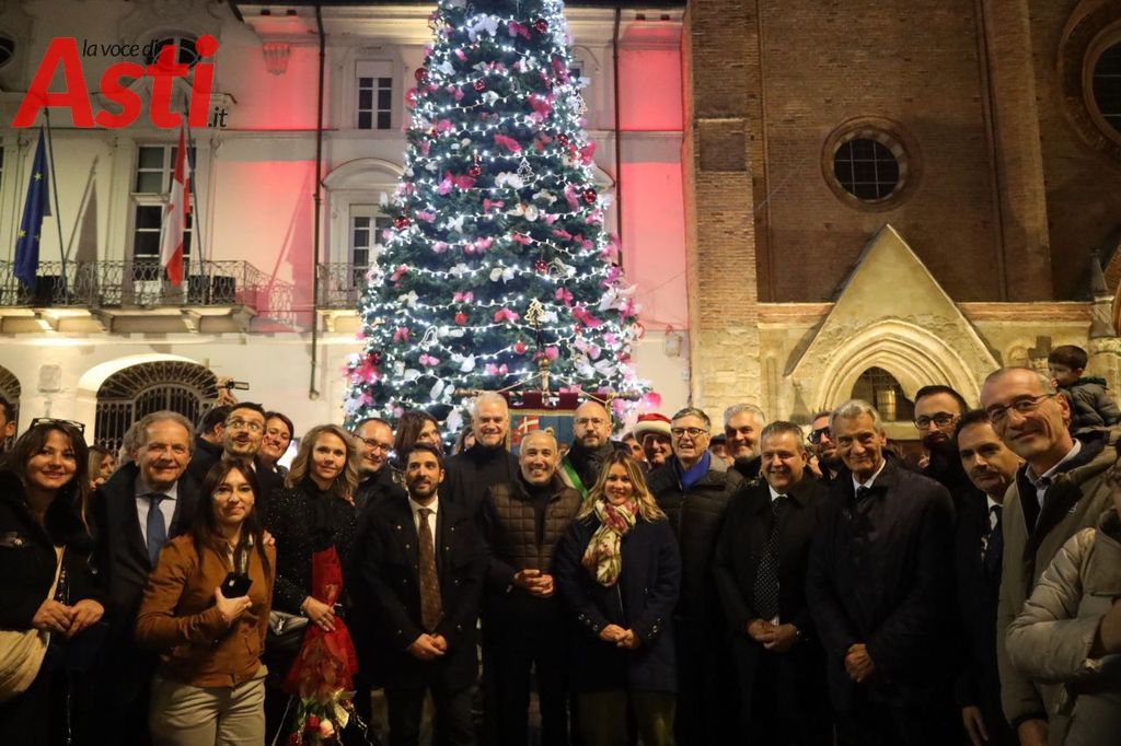 Alle 19 accensione dell'albero di Natale realizzato dalle CreATive di Asti, con sbandieratori e musici del Palio di Asti.