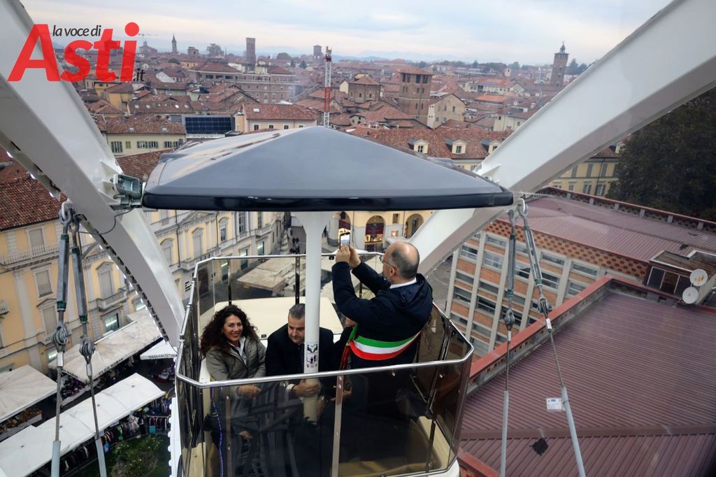 Con il giro inaugurale della ruota panoramica di 35 metri, il sindaco Maurizio Rasero e la sua giunta hanno dato il via al Magico Paese di Natale dopo aver inaugurato anche la pista di pattinaggio in piazza Statuto.