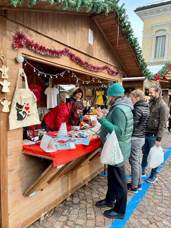 'A Natale i regali fanno le fusa'. Lo slogan, decisamente azzeccato, lancia la volata all'iniziativa di Protezione Micio, presente con il suo stand e i suoi gadget al Magico Paese di Natale, in piazza Roma ad Asti, fino alle 20 di stasera.